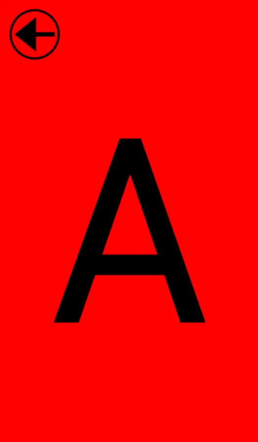 Clicking on a letter/color blows it up to the full size of the screen - clicking the arrow in the corner brings you back to the main screen. ABCD Cards is extremely easy to use and also lightweight on memory and storage (1MB in size).