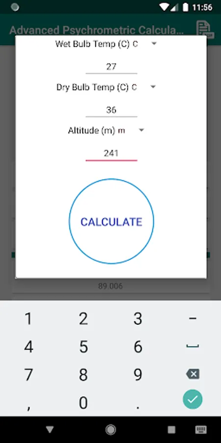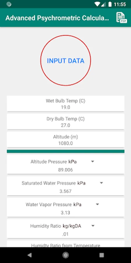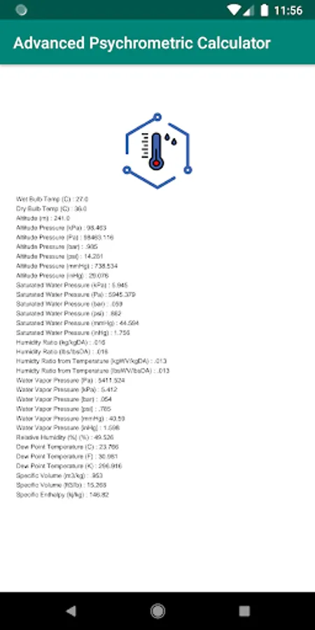 With this app, You can calculate relative humidity, dew point temperature, atmospheric pressure, humidity ratio, specific volume, water vapor pressure, saturated water vapor pressure.