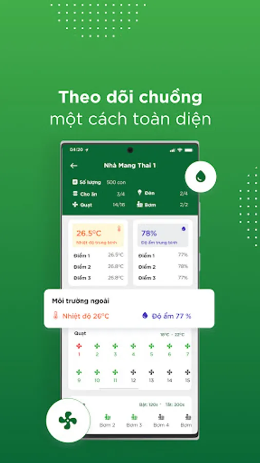 With the spirit of constantly innovating to bring efficiency and sustainable value to the development of the farm system, GREENFEED develops the "Cage monitoring application" with outstanding features and advantages that help: