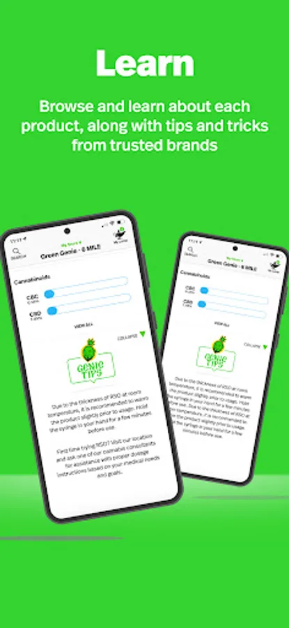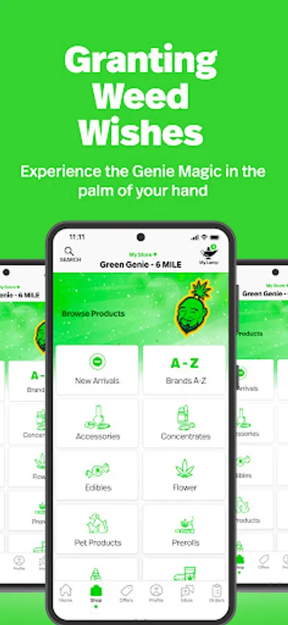 This app allows Green Genie patients the ability to browse our selection of available products along with exclusive access to personalized notifications regarding new arrivals, flash sales, and events. Explore detailed product information including THC and CBD levels, medical benefits, and more including: