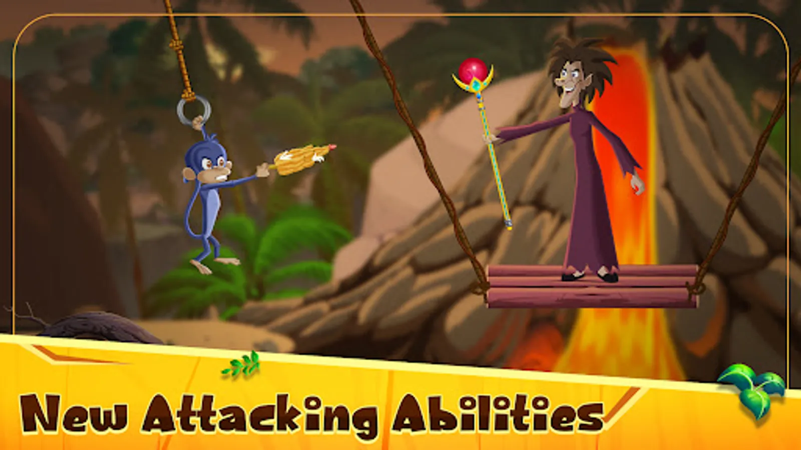 4. Jaggu - Jaggu’s special power is, he can throw fruits at his enemy and do a little damage. Jaggu also can jump and slide. His special power is, he can hang on the branches with his tail and throw objects with both of his hands.