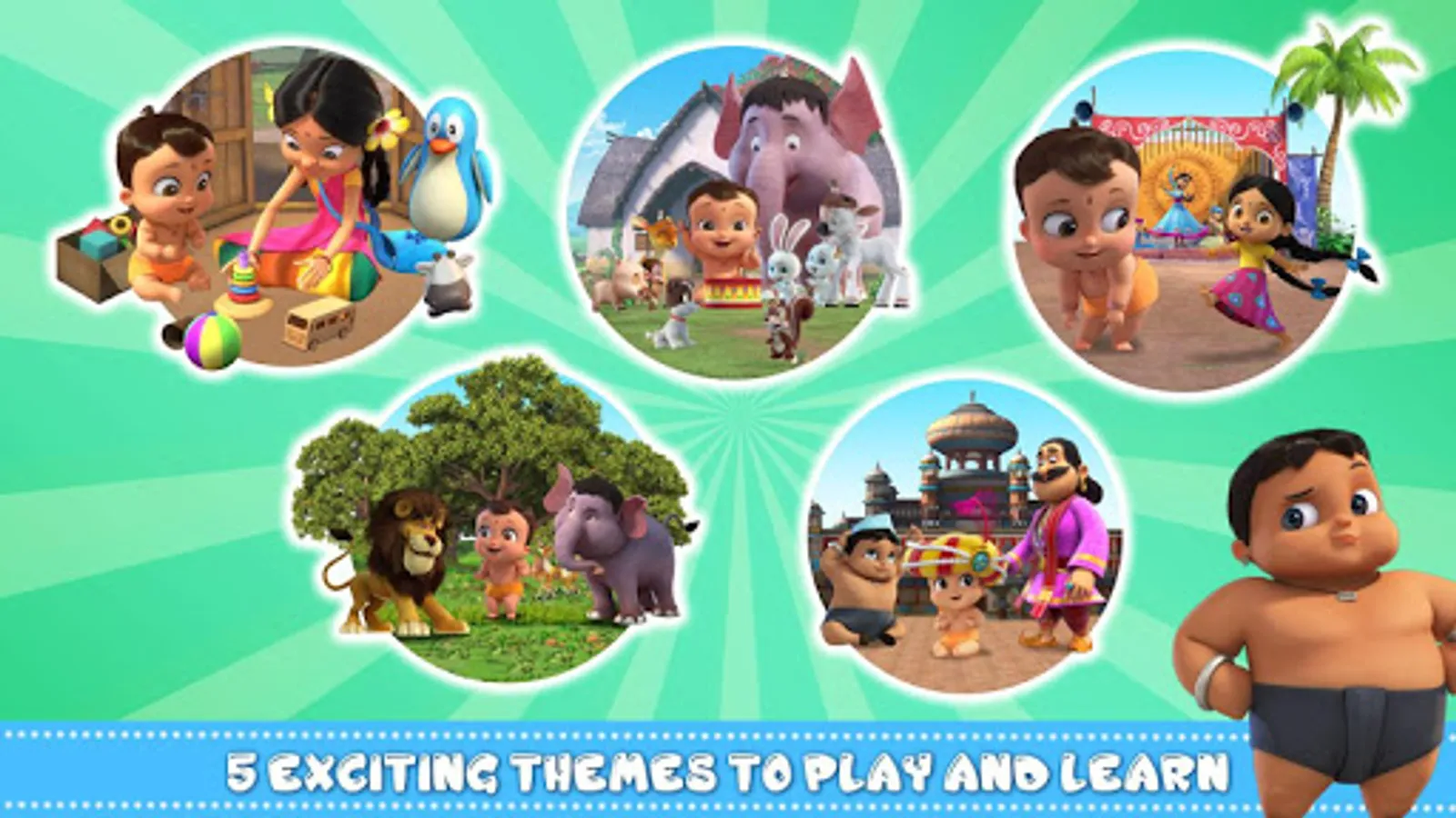 Mighty Little Bheem Colors and Puzzles App is designed with various themes as mentioned below: