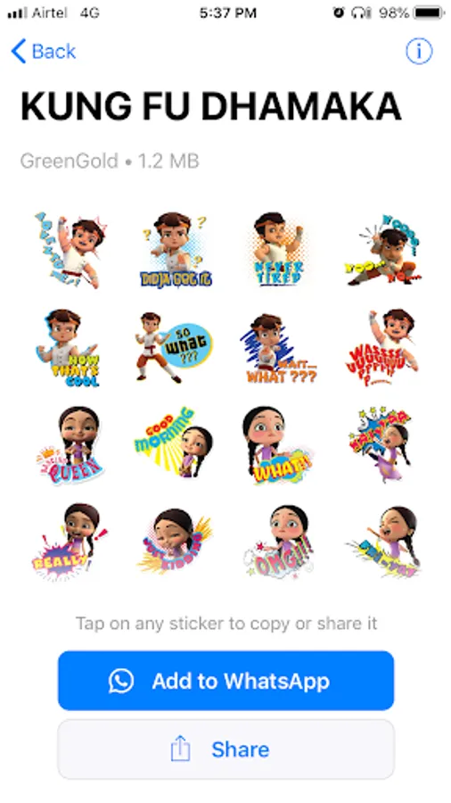 It includes Chhota Bheem, Chutki, Raju, Jaggu & Kalia's themes WhatsApp Sticker wishes for all occasions.