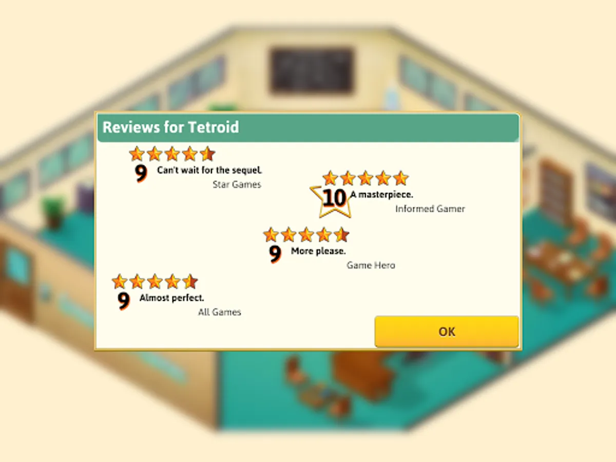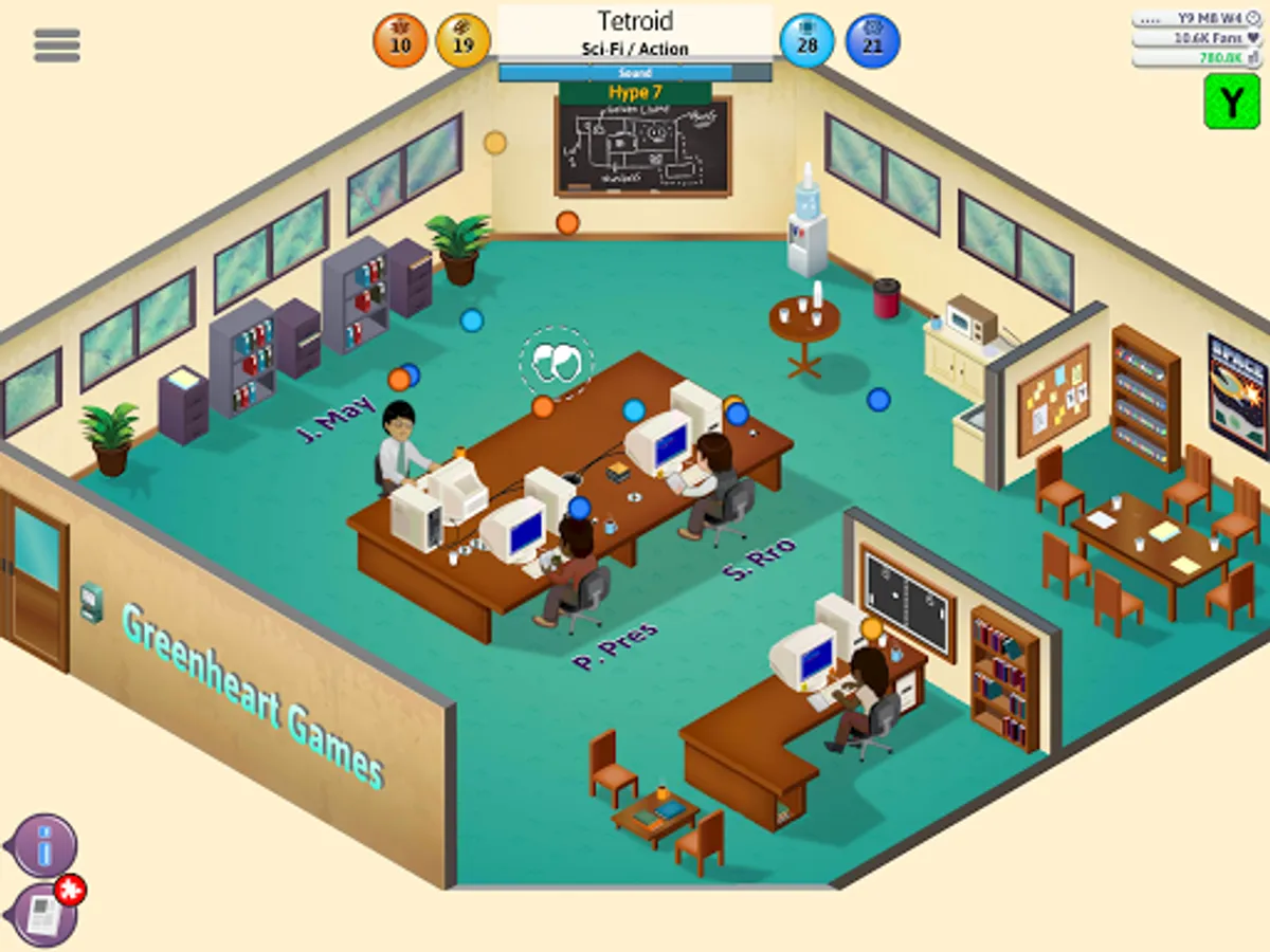Once you have successfully released a few games you can move into your own office and forge a world-class development team. Hire staff, train them and unlock new options.