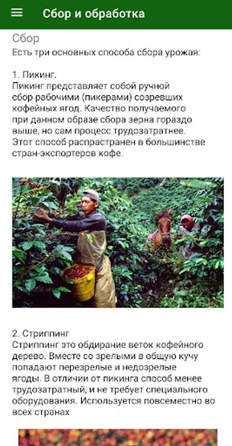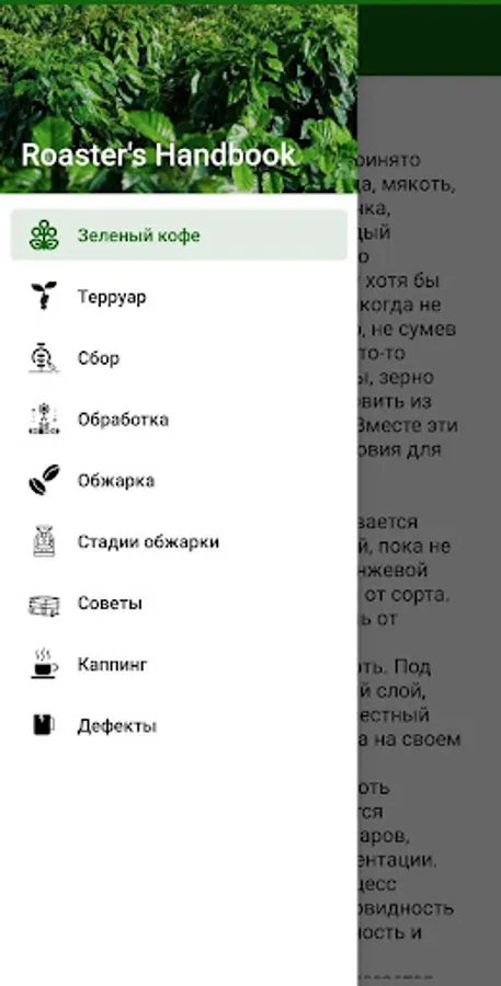 A summary of the entire journey that coffee takes, from the plantation to the cup. Description of the processes that affect the taste both during roasting and before it.