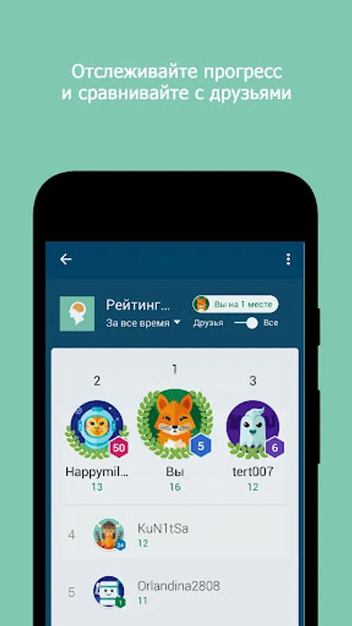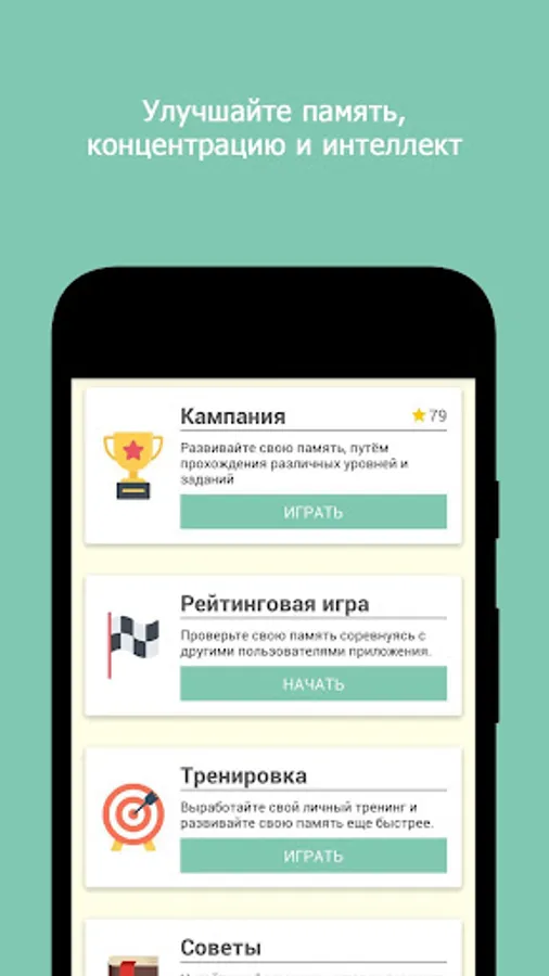 - Rating Game - development of memory and mindfulness through competition with other users of the application.