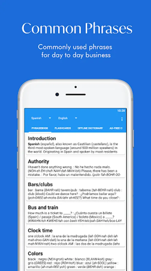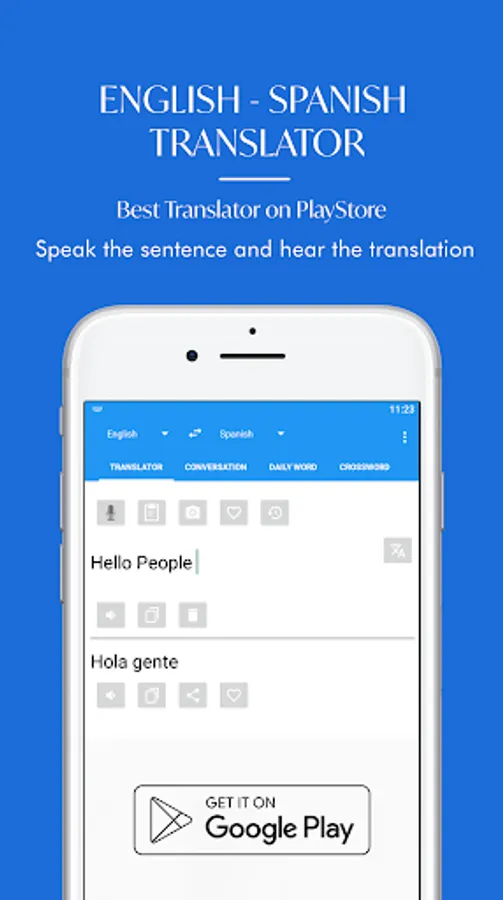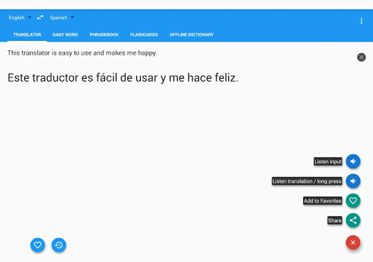Translate English to Spanish for free, Traductor gratuito de español a inglés, Translator offers offline Spanish dictionary and Translation history for translation without internet.
