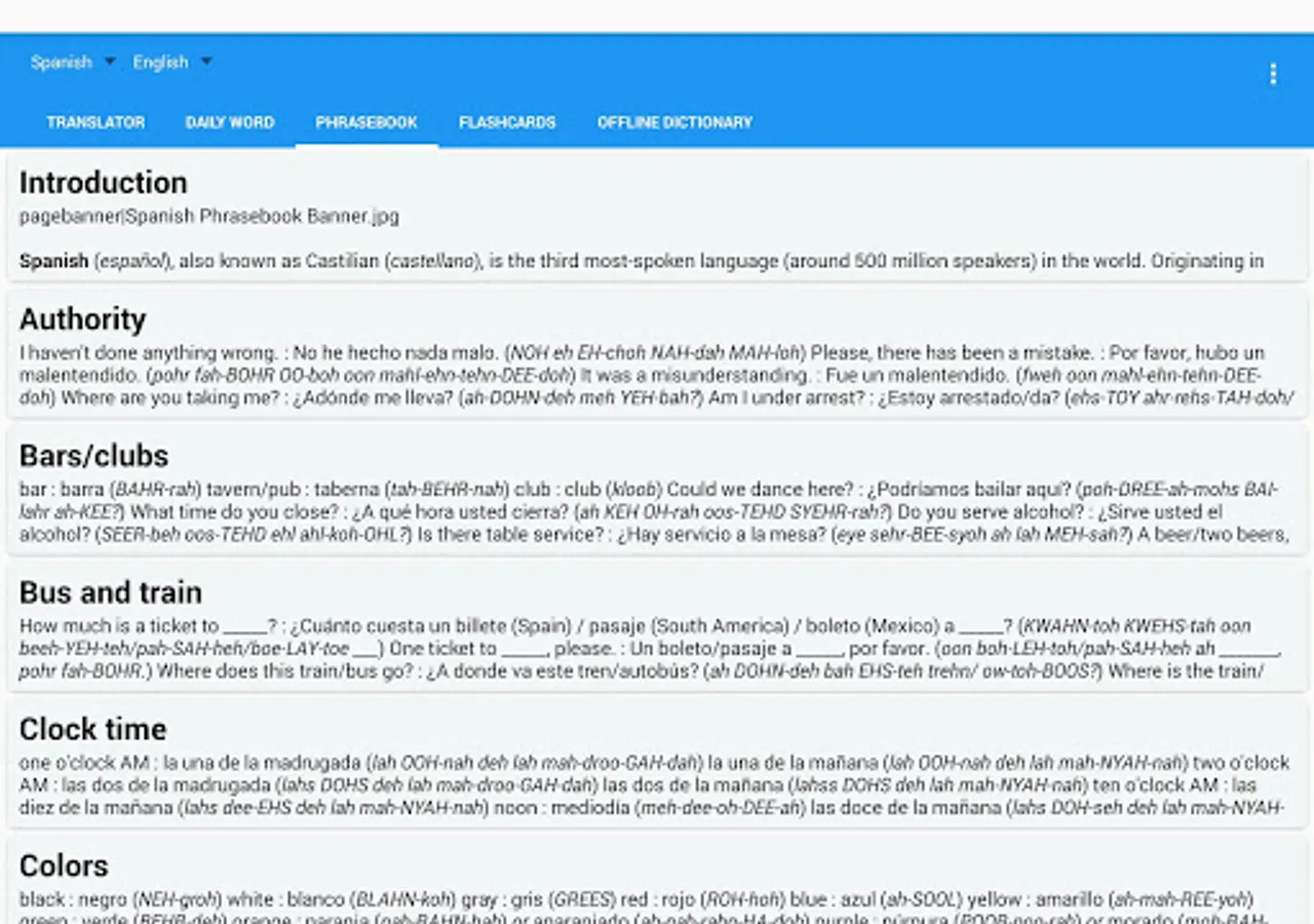 The Translator helps in Mexican español language learning or standard español phrases or Korean or Arabic Phrases by define words in wiki with pronunciation.