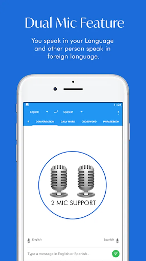 • Two mike feature - You Speak in your language and other person speaks in foreign language