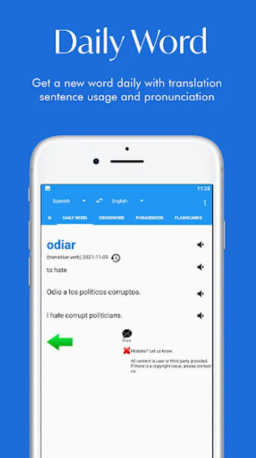 • Get a new word daily with meaning/translation , sentence usage and pronunciation