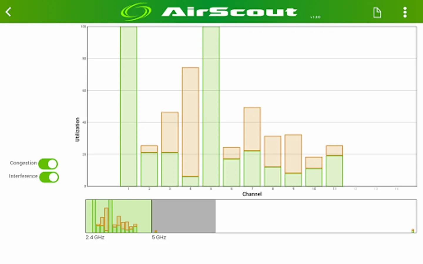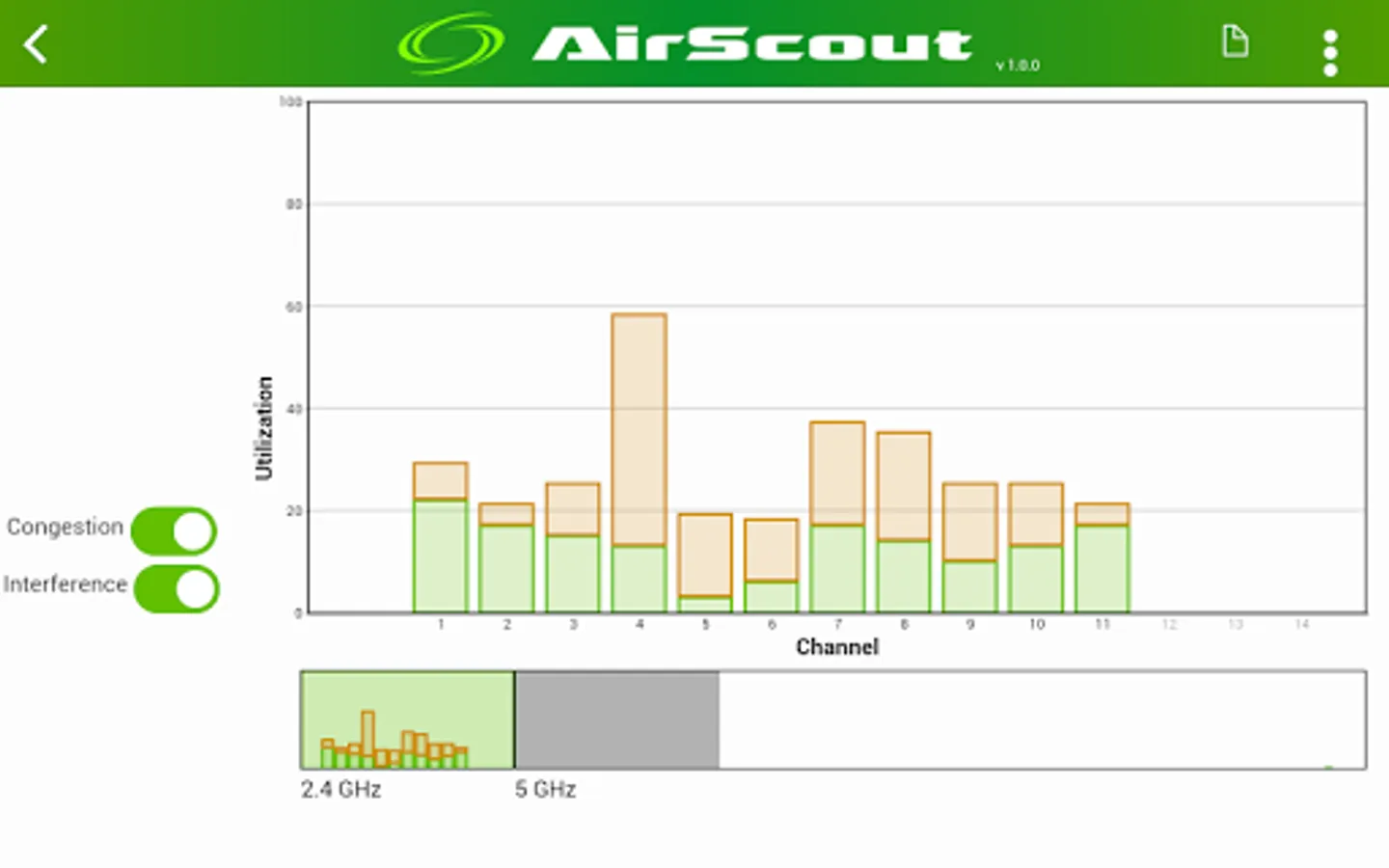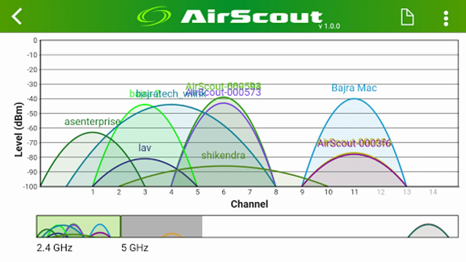 AirScout Live provides an automated solution that surveys the residence for all in-range and hidden access points. It provides users with a tool that distills complex measurements into easy to understand metrics; enabling them to better optimize their WiFi network.