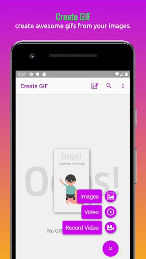 GIF Search & Maker is all in one application for GIF images & Stickers.Now you can make your own GIF image with out watermark.It's free,very fast and smooth android application. It's very easy to use.
