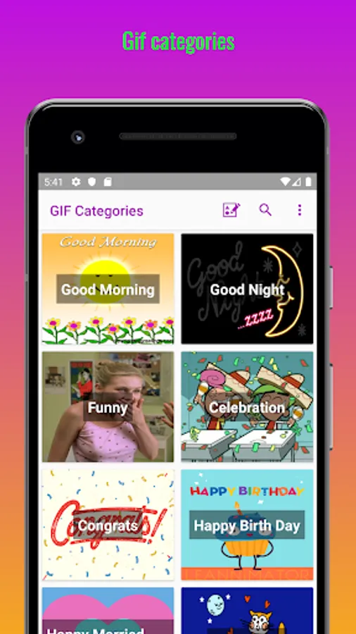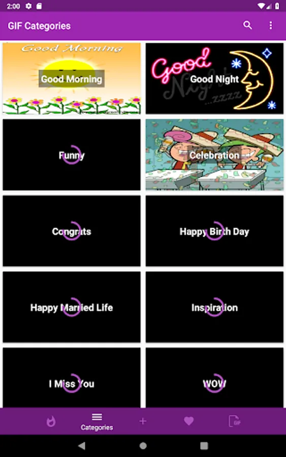 Providing frequently used gif categories such as Funny, Emotion,Celebration,Birth day wishes ... & more…