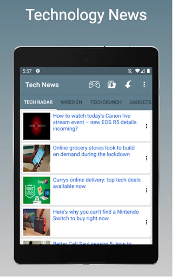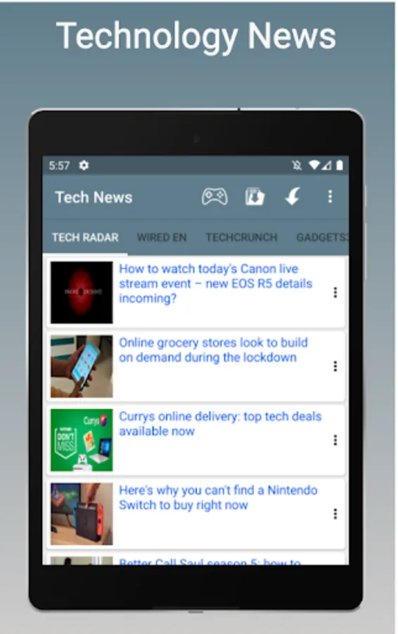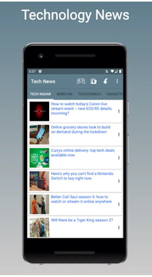Tech NEWS app provides latest technology news feed from leading technology news sites.Get live updated news on Technology, Hardware, smartphones, newest games and apps, updates and reviews and latest geek stories.You can watch trending technology videos with personalized tabs.