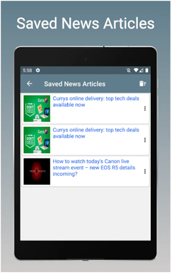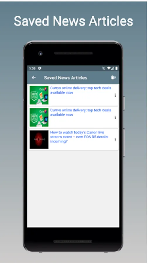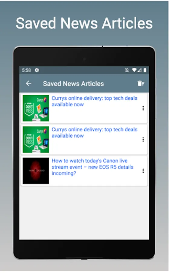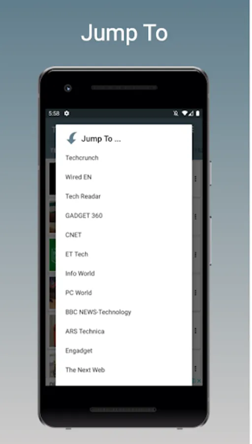 2.A personalized home screen to access different technology news feeds like Gadget360, CNET, InfoWorld, TechReader, ET Tech, etc.
