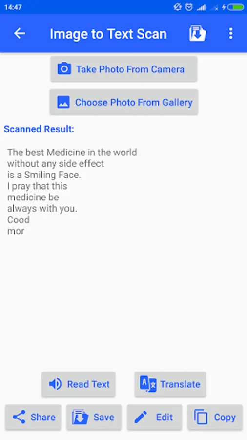 - You can convert an image to text (images can be taken from camera or gallery).