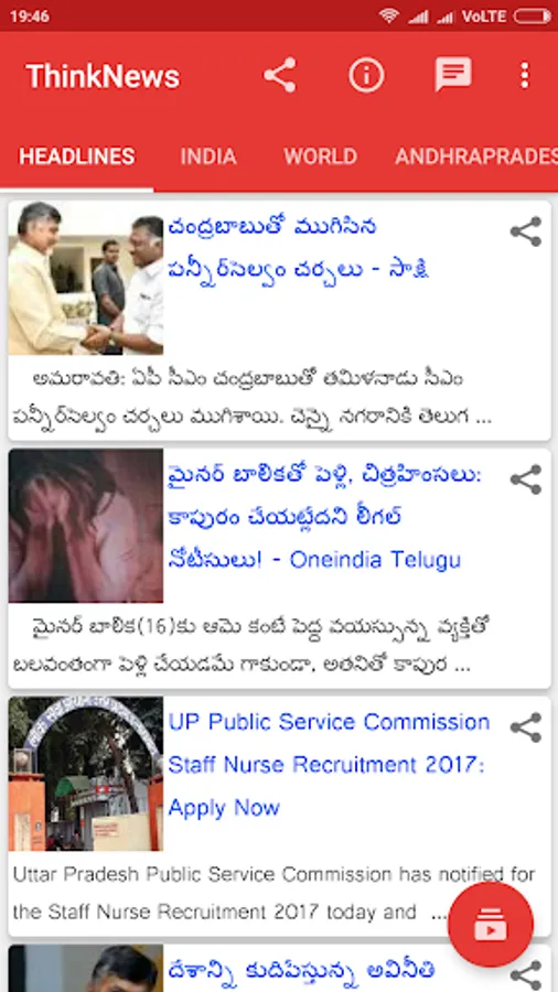 ThinkNews Telugu News and Videos provides latest trending news from leading news papers and news sites.Get live updated news on Politics,Sports,Business and Entertainment(Movies news),Word News.