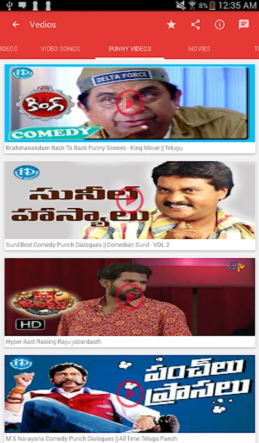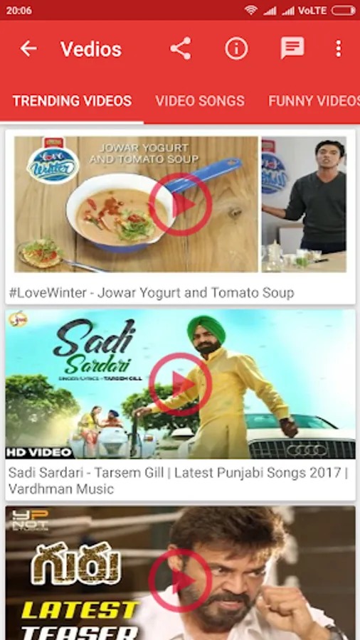 5.Watch latest trailers,trending videos,funny videos and etc by clicking on special button on the right corner of the every tab.