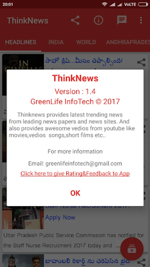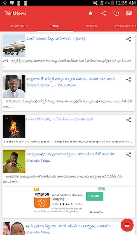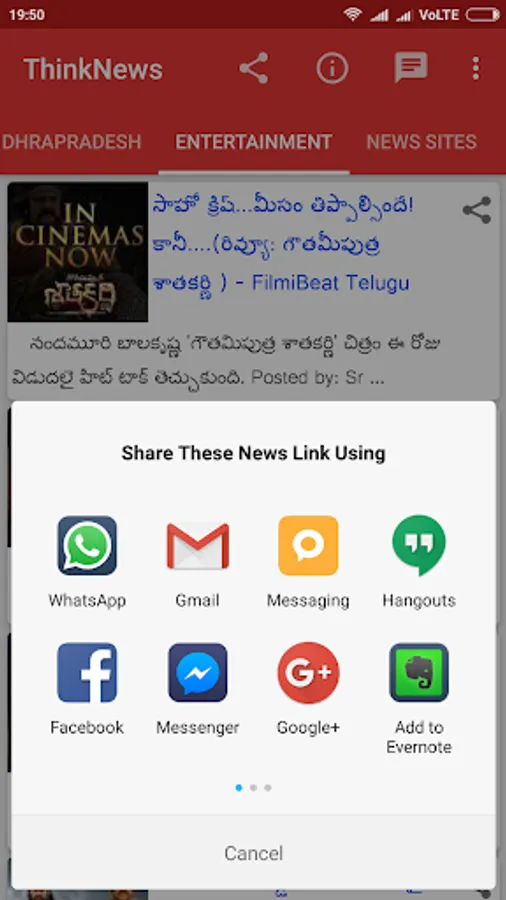6.You can share news over WhatsApp,Facebook,email or any other app you have installed for sharing data in your mobile.