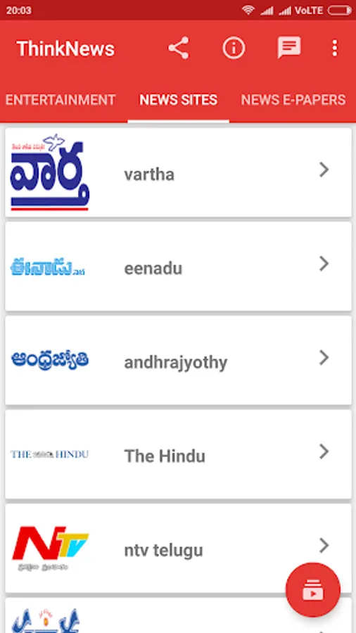 ThinkNews provides news e-papers and news sites of popular English and Telugu news papers like Times of India, Eenadu,Hindhu,Skashi,Asian age and etc.