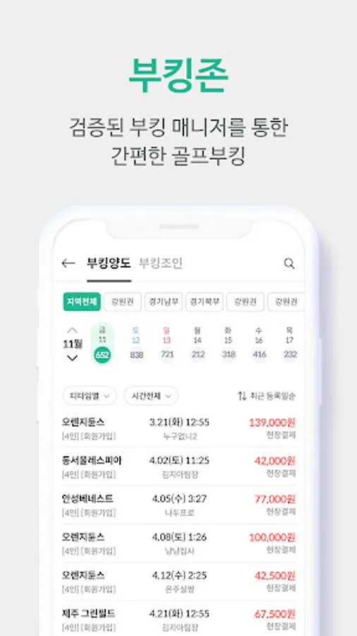 Any registered member can easily and quickly find a golf booking by region / date / tee time / golf course that I want.