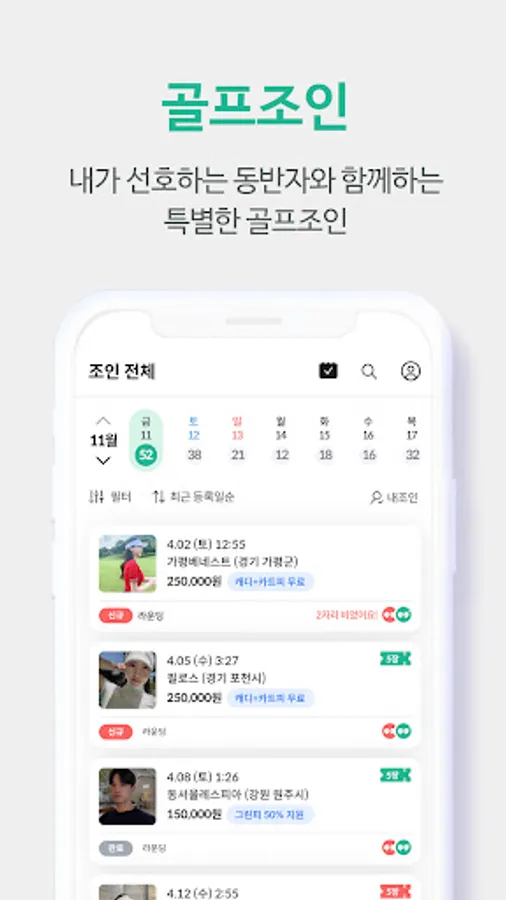 You can receive customized golf join recommendation notifications through the Wish Join registered by you.