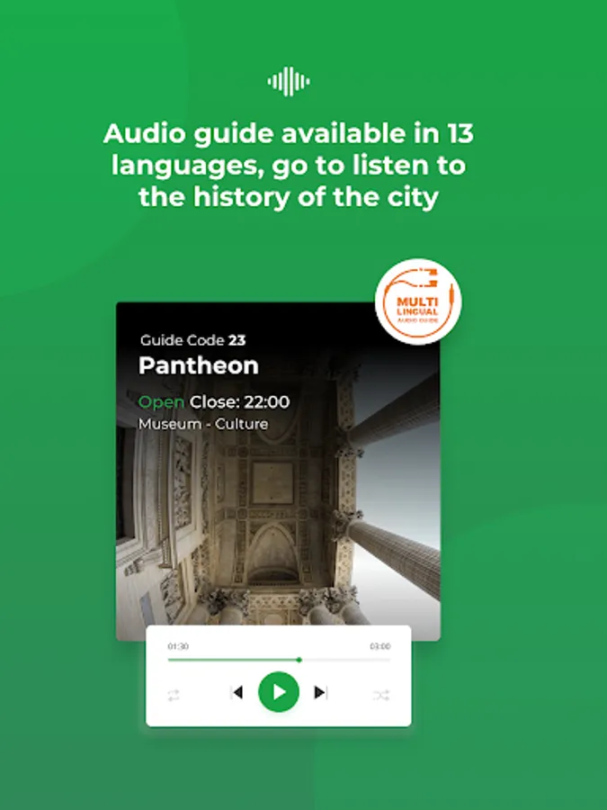 - LISTEN to the curiosities and history of the city of Rome by downloading the audio guide for your private Walking Tour (available in several languages). Discover fascinating facts about the landmarks of your destination. The downloadable audio guide will accompany you to discover the historic city of Rome.