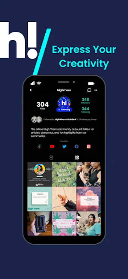 Lastly, build a creative profile that shows who you are to the High There community. Find a username that suits you best, add an image of yourself and update your description to let users know why you’re on the app. You’ll also be able to add social links, see your followers and who you’re following on your profile.