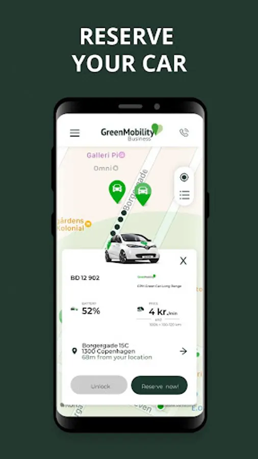GreenMobility Business app is for companies looking for a smarter form of transport. The app makes it easier for companies and employees to drive green and sustainable during working hours.