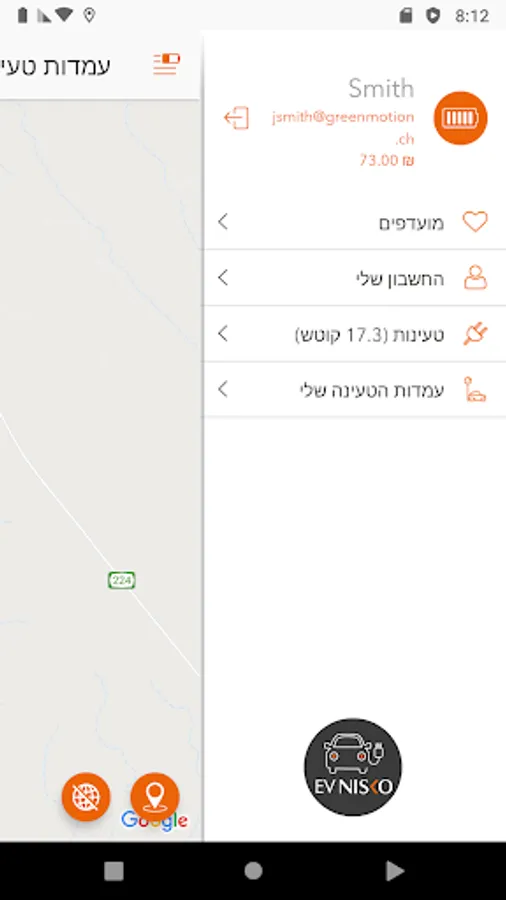 Allows access to electric vehicle charging stations and instantly displays the types of stations and plugs, EVNISKO availability