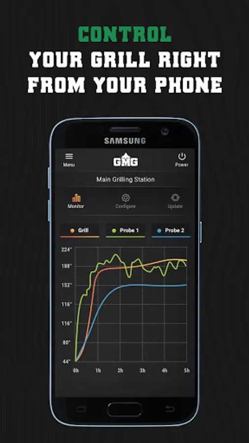Bring your Green Mountain Grill into the 21st century with our grill management app. This app utilizes WiFi and Bluetooth technology and has a range of up to 40 meters in Local Mode. You also have the ability to connect your grill to our online servers in server mode. You can create grill profiles, monitor meat temps, set timers and alarms, and adjust grill temps from inside your home or anywhere. The app also features calibration tools to calibrate both air temperature and probe temperatures. Stay tuned for updates and additional features on future releases.