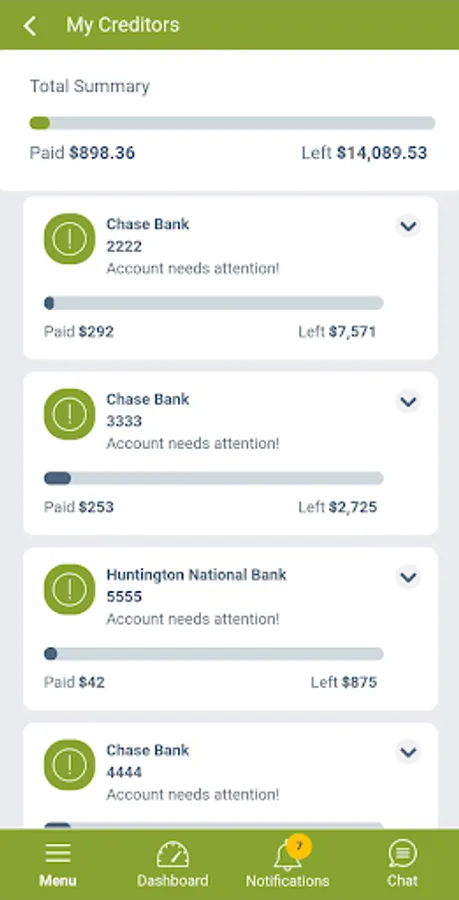 -View a list of creditors and activity on your DMP: Click to view details such as your balance, proposal status and payments GreenPath has made on your behalf.