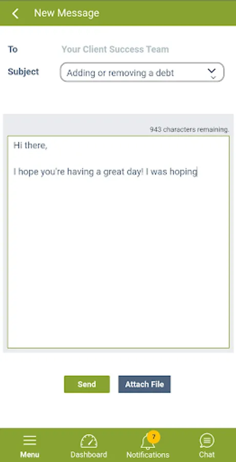 -Send secure messages through the Message Center: Use the Communication section in the menu to send a message to GreenPath staff.