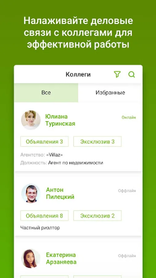 Get access to the list of realtors of your and other cities.