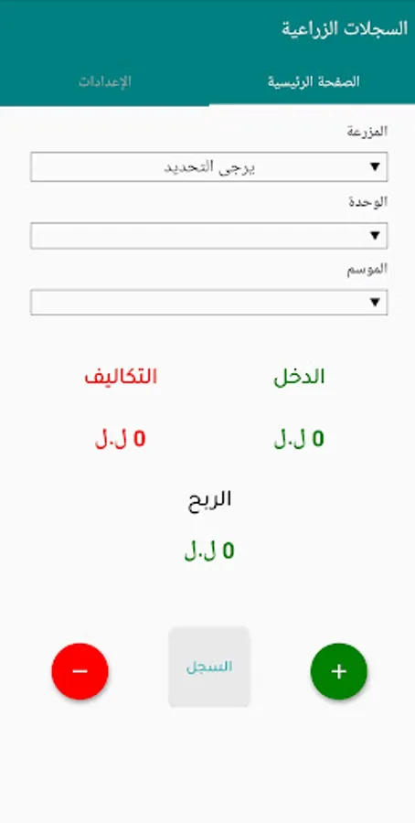 - تسجيل التفاصيل المطلوبة للمزرعة وللوحدات الإنتاجية.