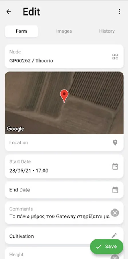 Also, the application supports the activation and management of devices located in the field, e.g. the operation of solenoid valves in crops based on decisions made using real-time data collected through devices that incorporate different sensors (eg temperature and humidity in air and soil, gas concentration, geographical location, radiation, wind, etc.) .