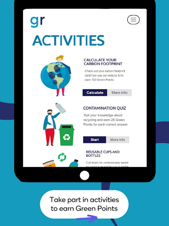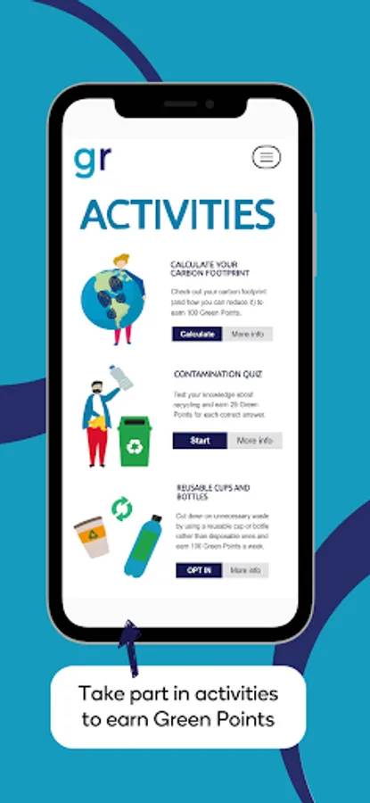 You can make submissions, opt into activities, and earn Green Points as well as view leader boards and enter your weekly achievements.