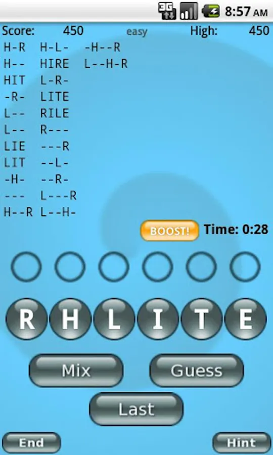 Word Mix ™ is an addictive anagram game where you need to form as many words possible out of a pile of six jumbled letters. Be sure to guess the six letter word to move to the next level. Guess as many words as you can to add to your score...you too could top the global leaderboard! Compete against the clock or play a leisurely untimed game. With two English dictionaries and three foreign dictionaries, tens of thousands of levels await you!