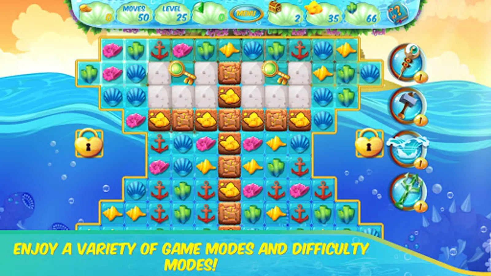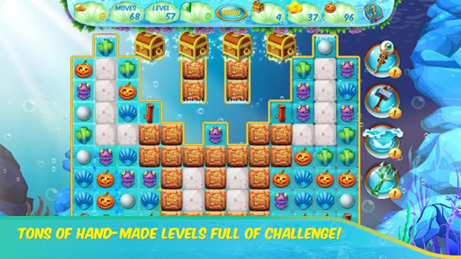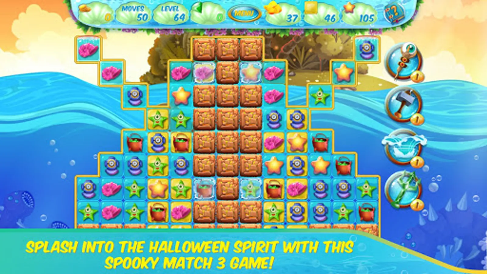 Grab your diving gear and join Beatrice, the guardian of the seven seas, in this enchanted underwater Halloween adventure. Enjoy clever match 3 puzzles as you earn money to decorate a sanctuary with colorful fish and awesome thematic ornaments. As you improve your sanctuary, earn diamonds to buy cool power-ups that help you beat levels. Match your way through the wonders of marine life and explore a bewitching underwater world. Dive on into FishWitch Halloween.
