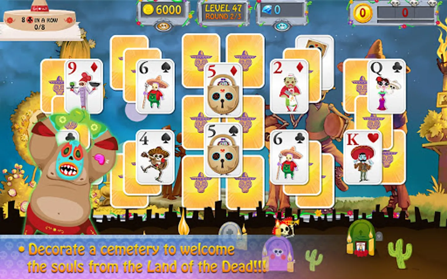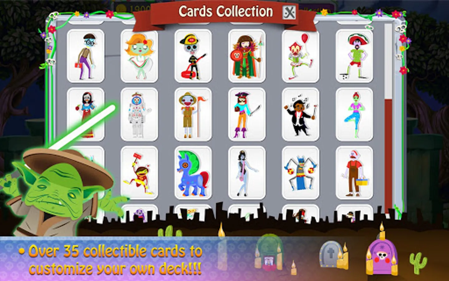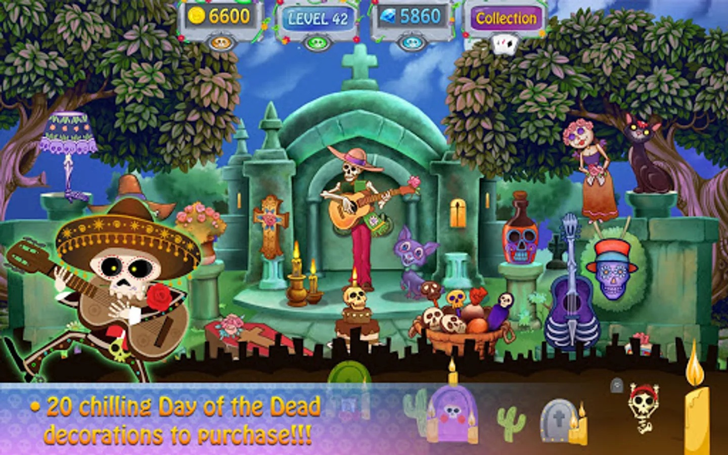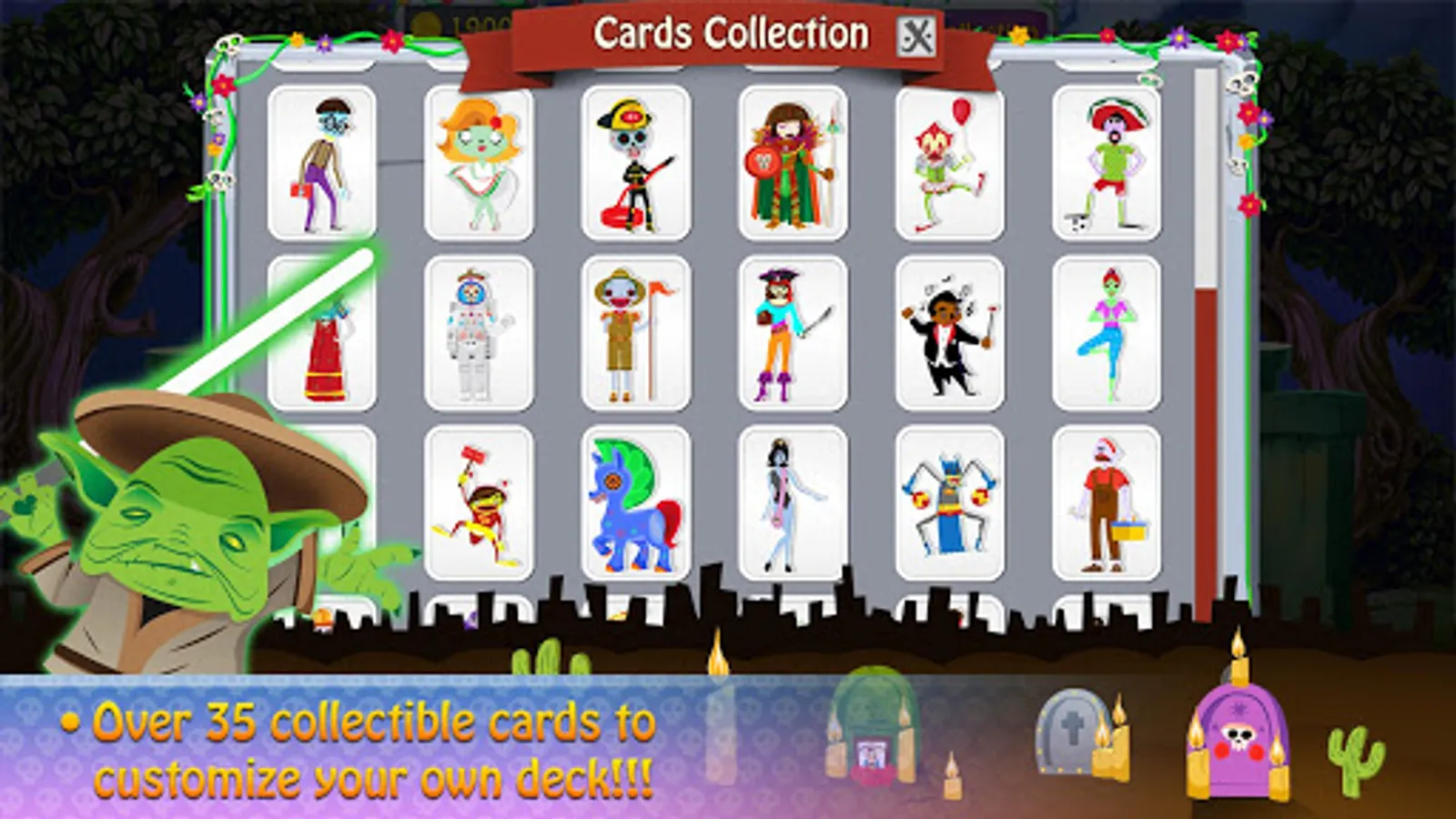 Take a deep breath and dive into this fantastic journey on "Dia de Los Muertos", the Day of the Dead - Find collectible cards to customize your own deck and decorate a cemetery to welcome the souls from the Land of the Dead.