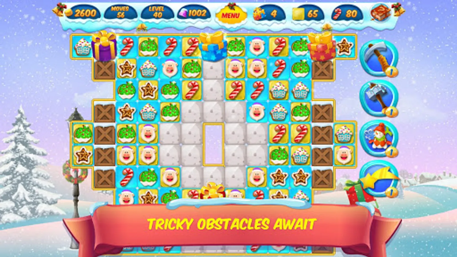 Sleighbells are ringing and Christmas is around the corner, but Santa has gone on vacation! Your assistance is urgently needed to make Christmas still happen. Help Nina and Elfin spread the joy of the holidays to all corners of the world. Prepare to match your way through the magical world of Christmas. Enjoy addictive gameplay as you earn money to decorate Santa's home with festive ornaments. Use handy power-ups to beat the tricky levels. And enjoy the season's spirit in this marvelous match 3 adventure.