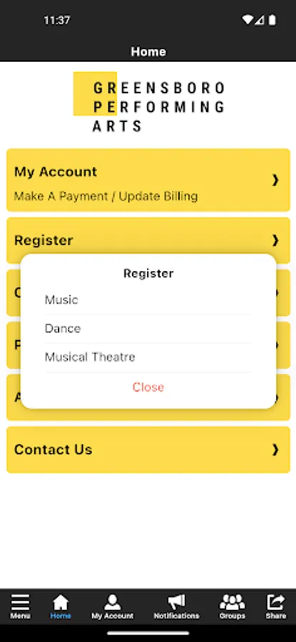 The GPA app allows you to manage your account with ease, register for classes, workshops, class passes, parties, and special events. You'll also receive important notifications about class changes, closings, registration openings, special announcements, and upcoming events.
