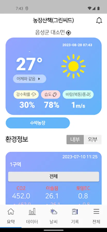 Continuously collects environmental information of ICT equipment installed in the smart farm and allows users or managers to