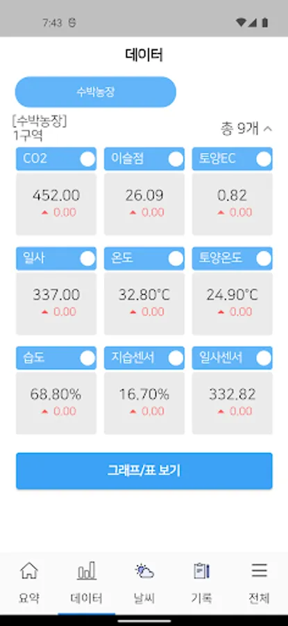 1. Receiving environmental data: internal temperature and humidity, solar radiation, CO2, root zone temperature data