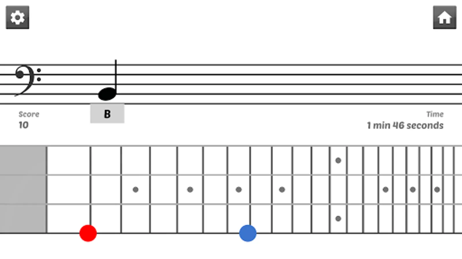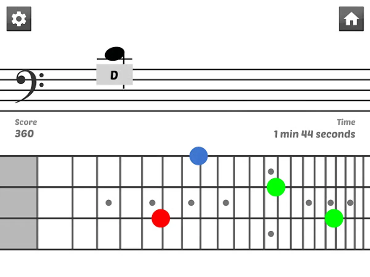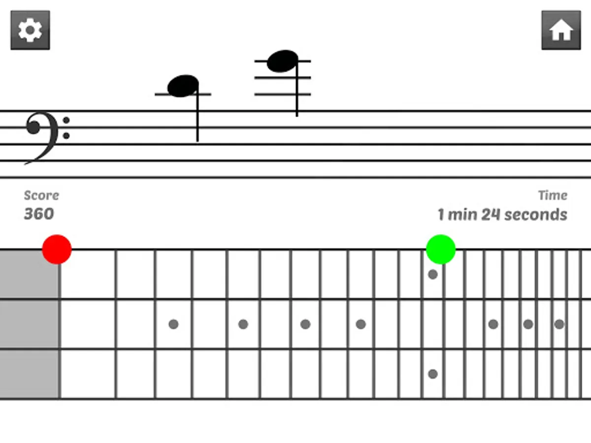 Develop your speed and accuracy in reading sheet music by identifying random music notes in timed sessions: A note is displayed on the music sheet, just tap the right string(s) and fret(s) on the fretboard of the virtual bass (manage multiple correct answers).