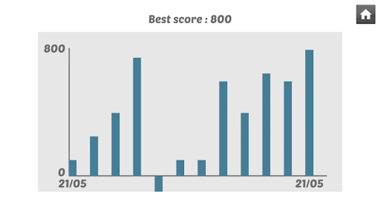 Each score is saved with its date, so that you can review your progression over time with nice graphics.