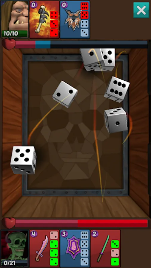 Recruit orcs, trolls, demons, skeletons, etc. Build your unique team with weapons, shields, special abilities, skill points, magic dice, minions, etc. Unlock your heroes’ unique abilities and improve them. Assign skill points to improve health, damage, defense, recovery speed, etc.