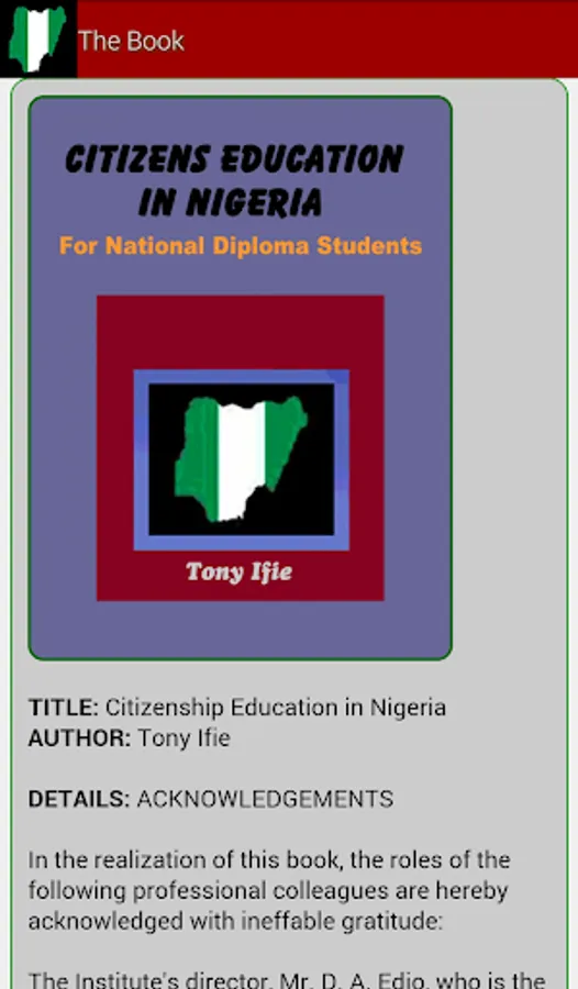 This is a textbook that fully covers both parts of the NBTE syllabus for the National Diploma's course in citizenship education in Nigerian polytechnics and colleges of technology.