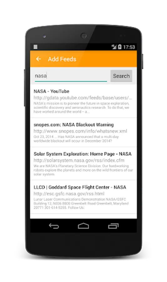 - Search feeds or add feeds manually