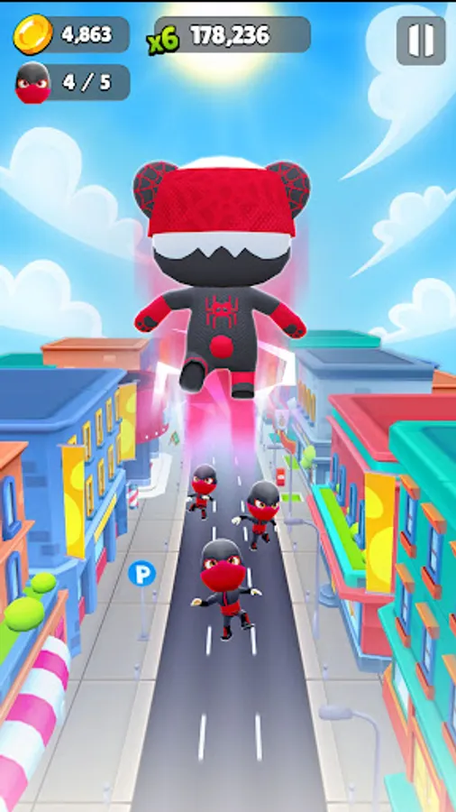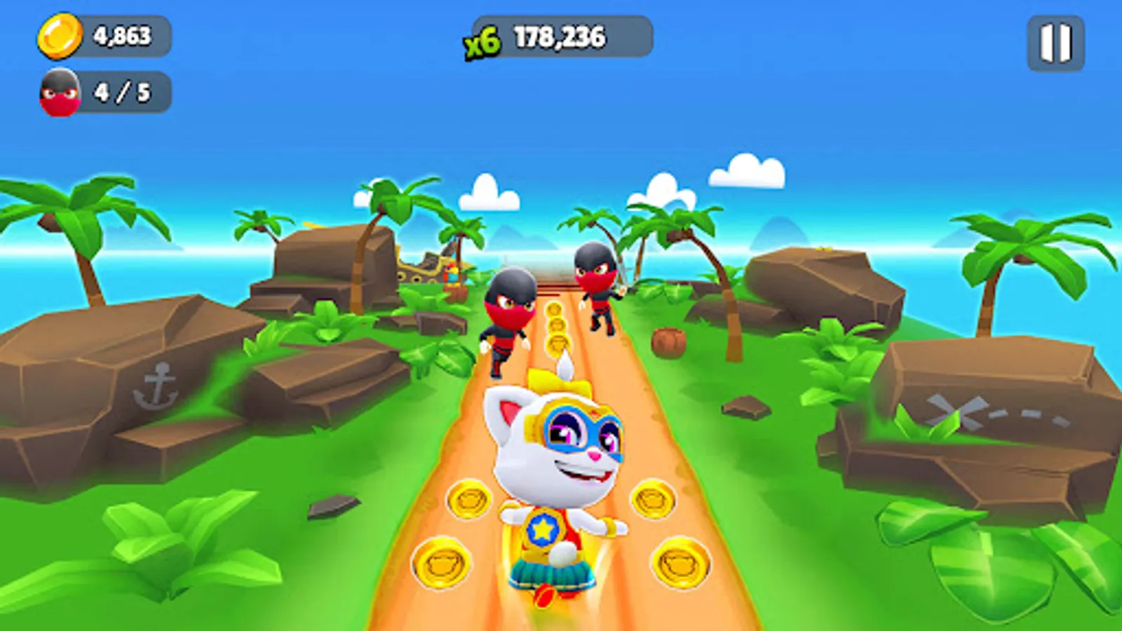 Find your friends who are lost in time, in each portal is a different character to save and play as! Run as Super Pi Panda, Super Koko Cat, Super Disco Dog or Captain Sparkle and more. Each character comes with their own cool Superhero costume. Collect golden coins in the running game and collect them all.